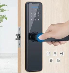 اولا قفل ببصمة الإصبع: يتيح فتح الباب عبر بصمة الإصبع بسرعة وأمان.